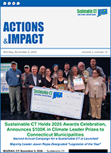 Questions or comments about Actions & Impact should be directed to the Sustainable CT communications director, Jim Hunt, via email or by calling 860-259-4732. If you wish to subscribe, please join our mailing list at the bottom of this webpage; if you wish to unsubscribe, you can do so at any time by using the Safeunsubscribe® link found at the bottom of any group email you receive from us.